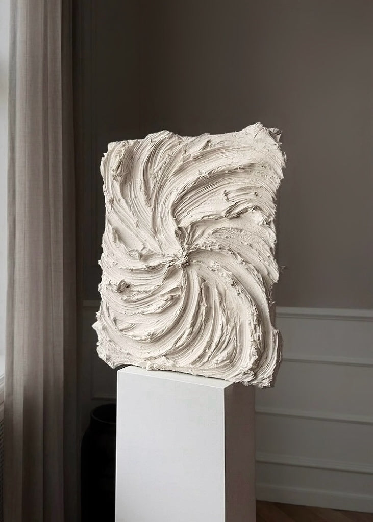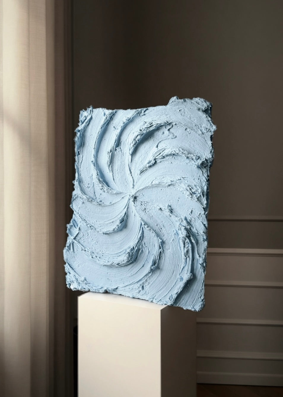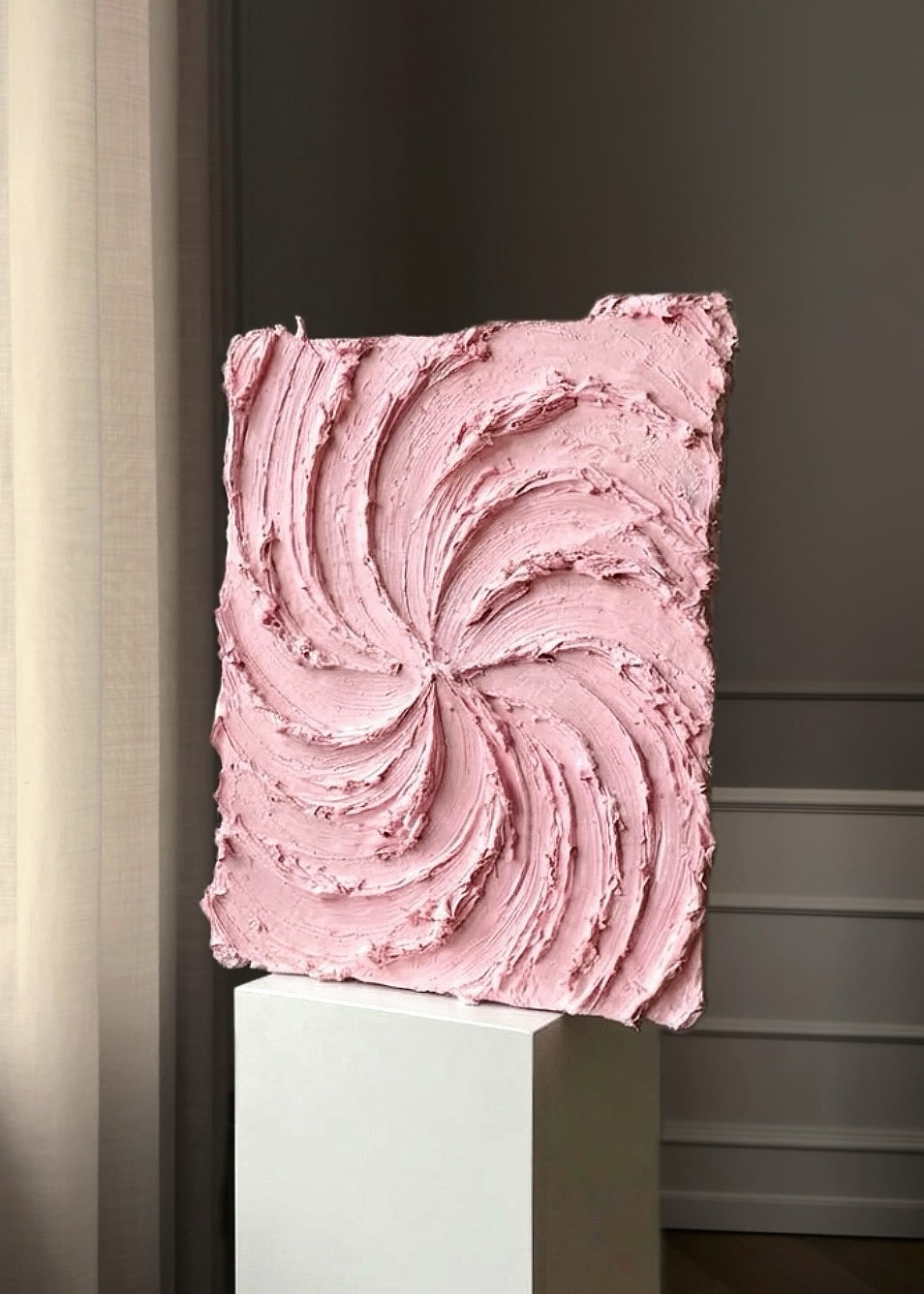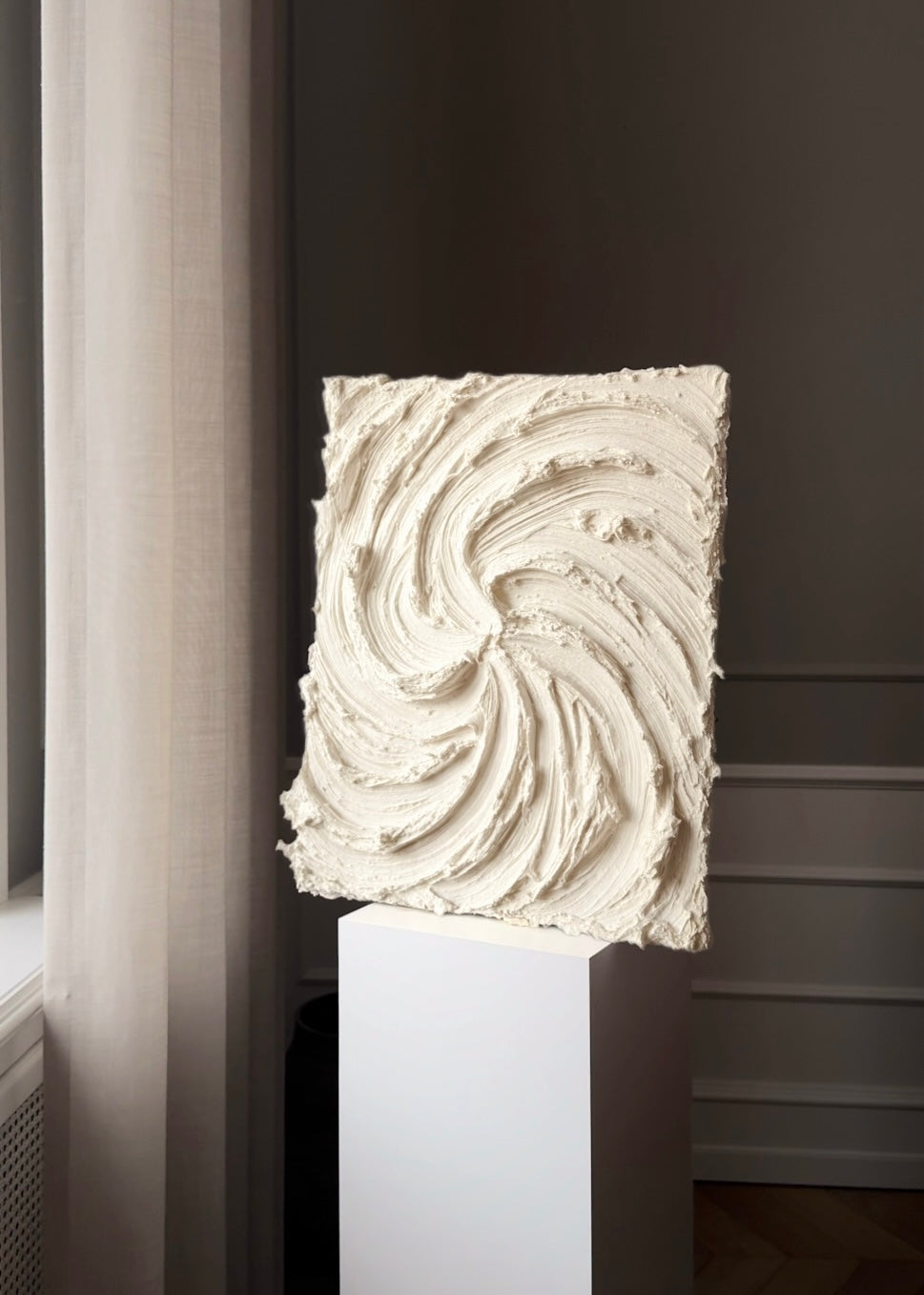 Each Fluff Swirl is handmade by the artist Olivia Juul and individually signed. Every artwork is crafted on canvas using plaster and acrylics in a color of your choice.